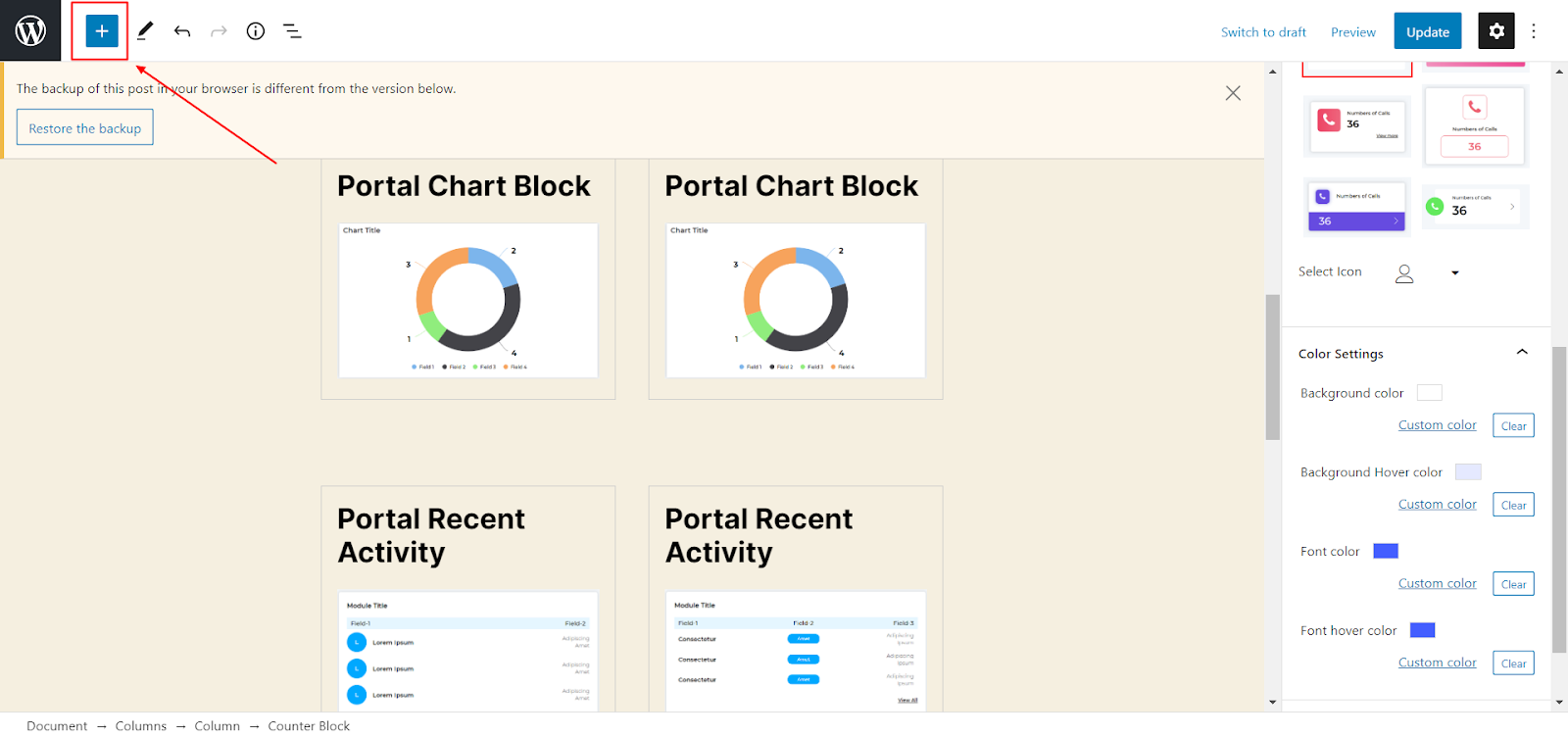 Click on the ‘Edit’ button under the ‘Portal Dashboard Page’ and you will be redirected to the Edit page of the portal dashboard. Now press the ‘Add Block’ button to add any image, videos, and content.