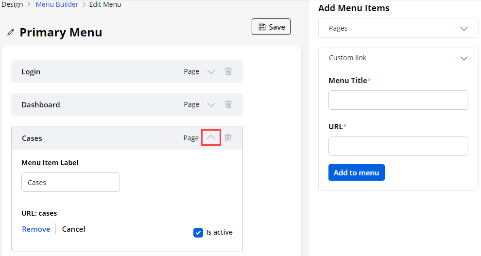• Is Active: Enable/Disable the Menu item for the customer portal.