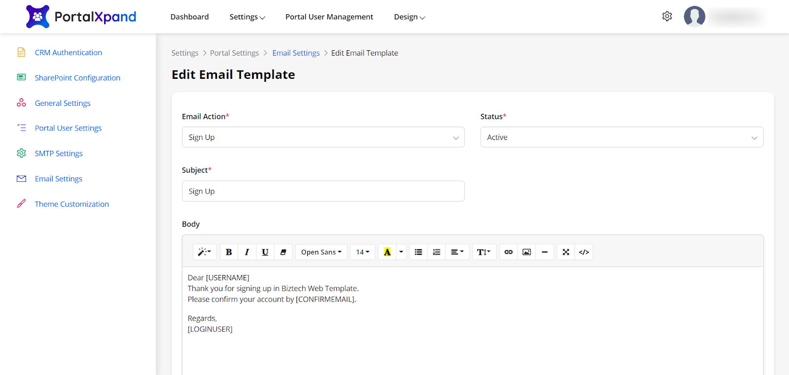 Edit the template as per your wish and click on the “Save” button to save the updated template.