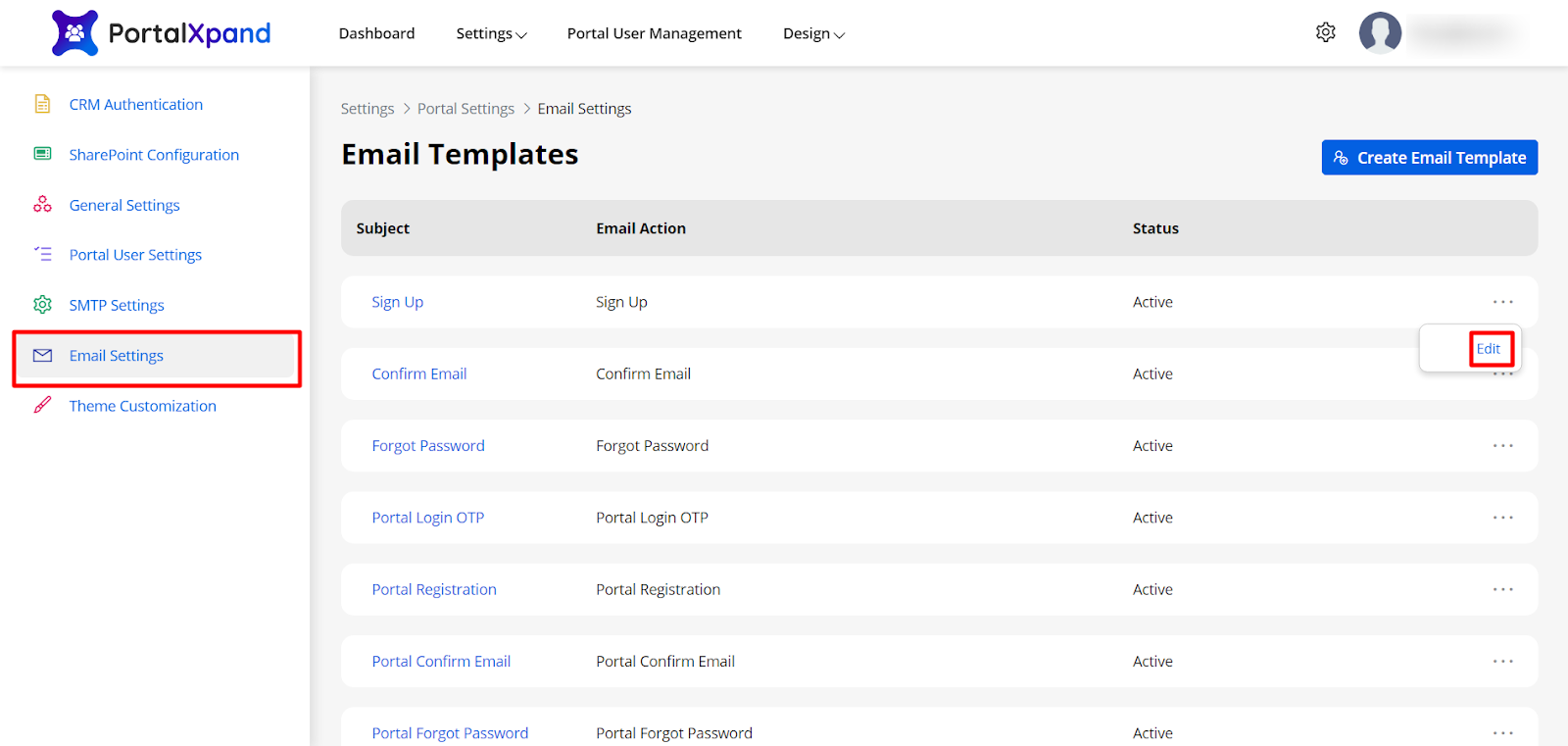 Go to Settings ➤ Portal Settings ➤ Email Settings, you will land on the “Email Templates” page.