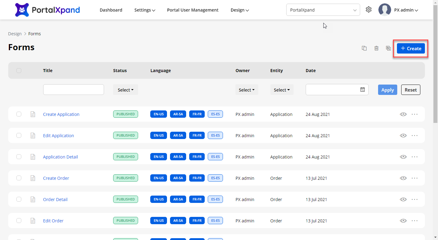 Navigate to the Design ➤ Forms, you will land on the Forms page.