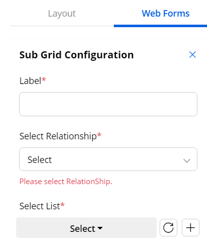 You will get the sub-grid under the Layout tab. You just need to drag and drop the sub-grid layout in the panel and add the following details.