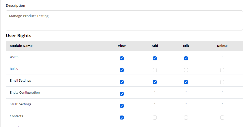 From here, once you enable the Module’s view, you can assign the rights to Add/Edit/Delete as per requirement.