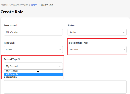 - My Records: If the admin selects the My Records, the portal users will get their own records and related records when they log in to the customer portal. i.e Company-level records.