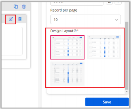 - Design Layout: By scrolling down, you will get the 3- predefined Design Layout (Style) for the List view. By clicking on any design, you will get a preview of it. Select any design layout to display in the customer portal.