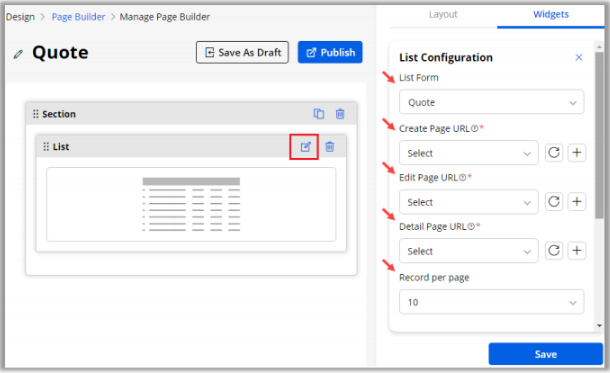 - Edit Page URL: Select the Page URL to redirect to the Edit Page.