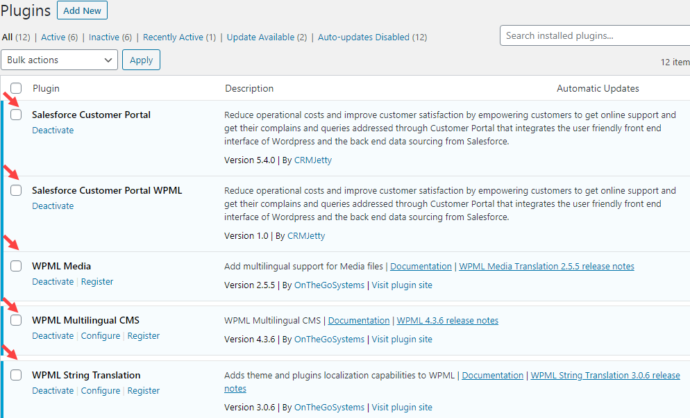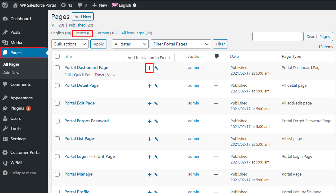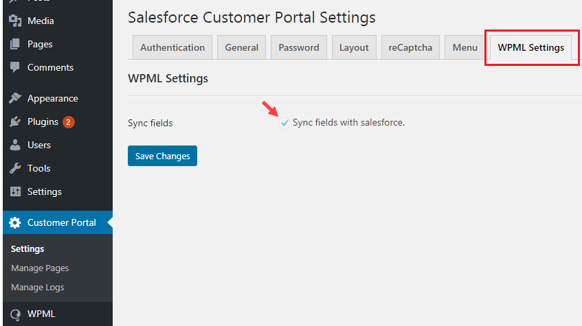 – Install and activate the “Salesforce Customer Portal WPML” and WPML Plugins into WordPress.