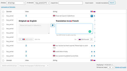 “Salesforce Customer Portal WPML” is primary a plugin for the SF Customer portal to configure and manage the translation of the customer portal content: Menu, Pages, Theme & Strings.