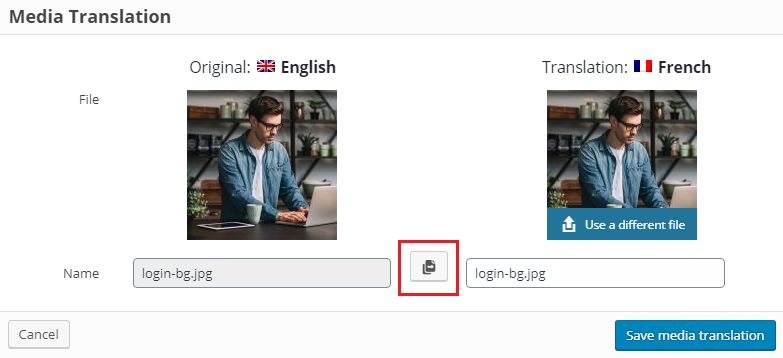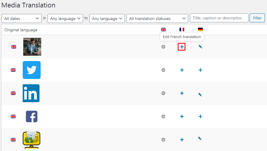 You can translate the language-wise media content. By clicking on the + icon, you can edit the translation of the content.