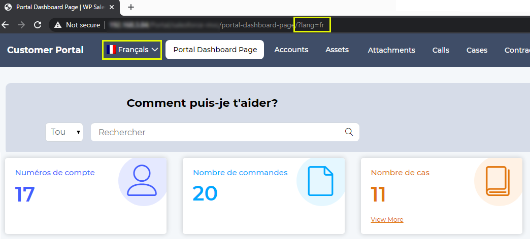 The customers can access the portal by selecting their regional language Once you have installed the plugins for WPML and configure the Salesforce content by syncing.