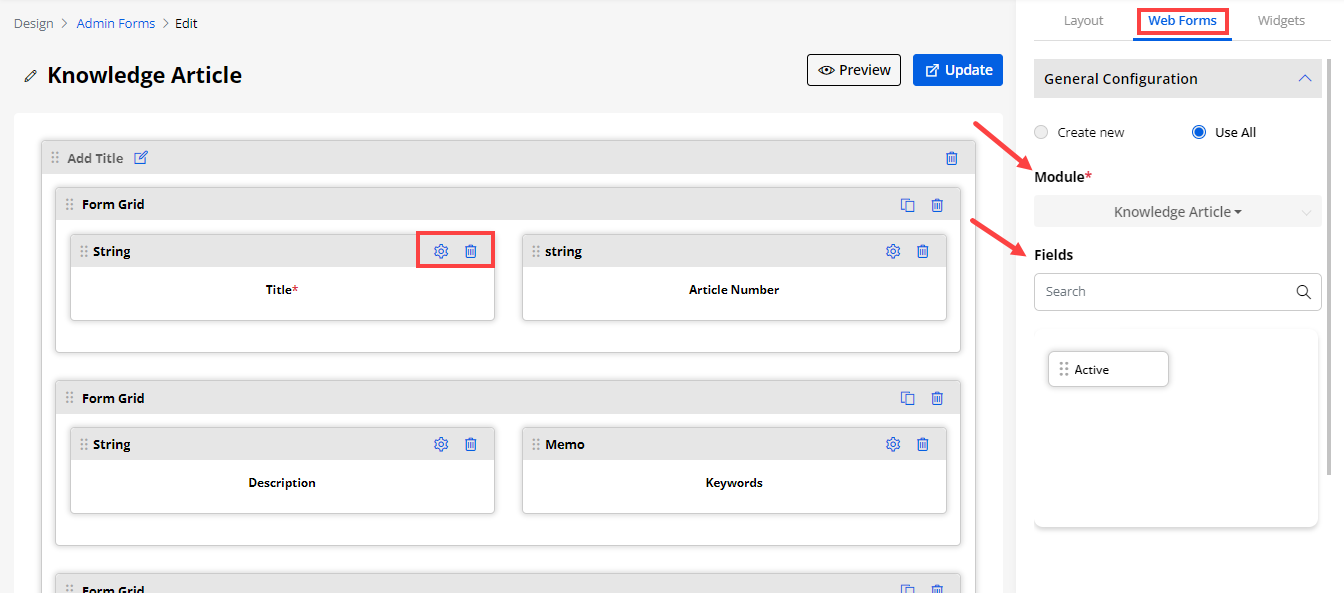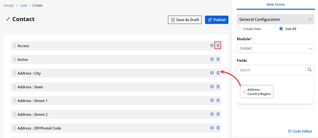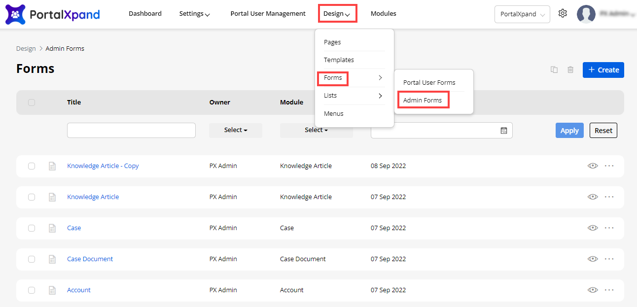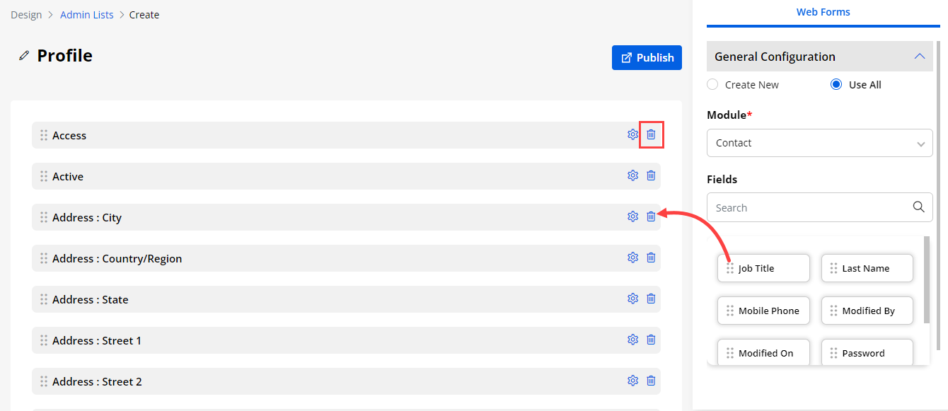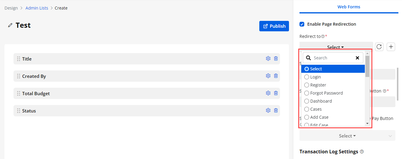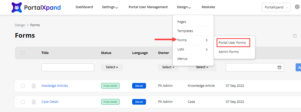 From the module listing page, the portal users can navigate to the edit page. When they delete the module record, after success, they will be redirected to the page as selected for the “Delete Redirection” page. [1]