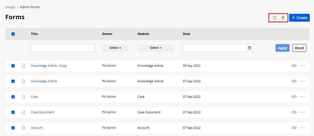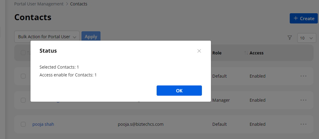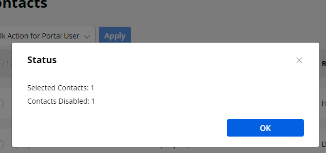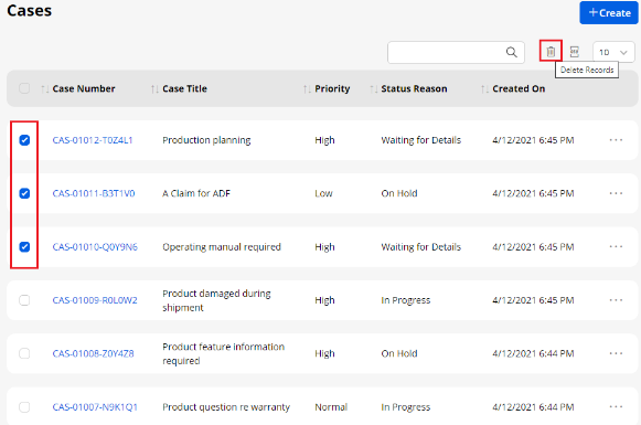 The portal users can also delete multiple records as you have given the delete rights. Portal users can select the entity records in bulk and by clicking on the Delete Records button beside the Create button or Delete icon on the card.