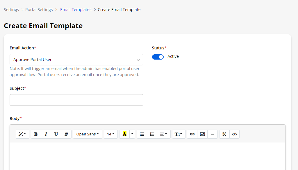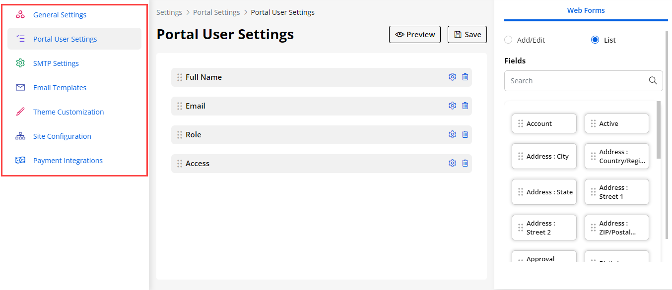 From Portal Settings, you can configure all the portal-related settings and manage Portal users. You can configure the following settings under Portal Settings: [1][2]