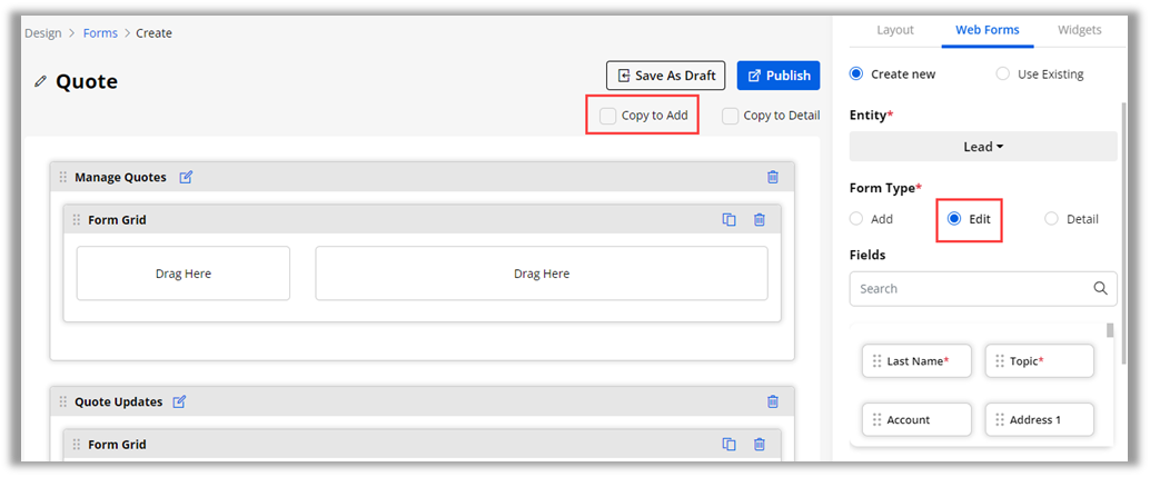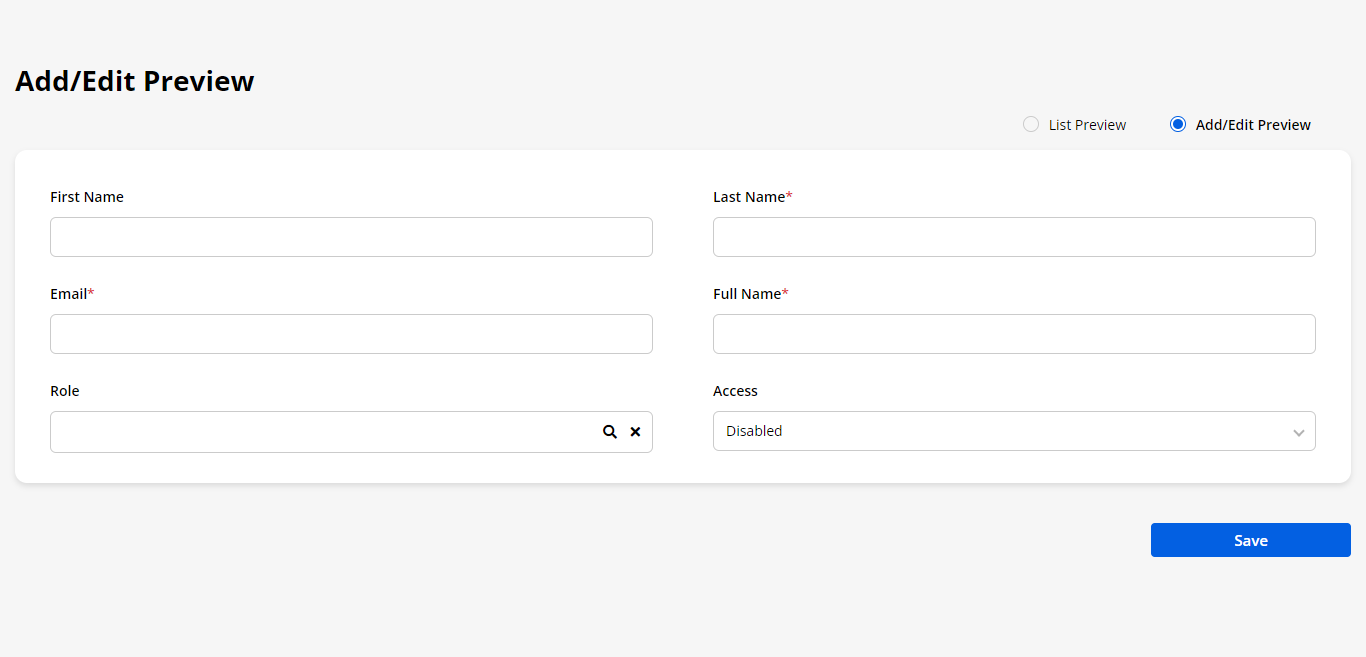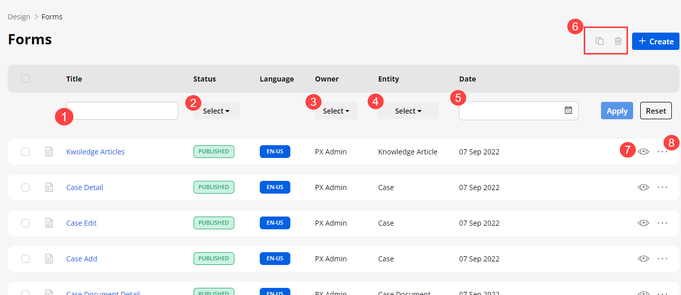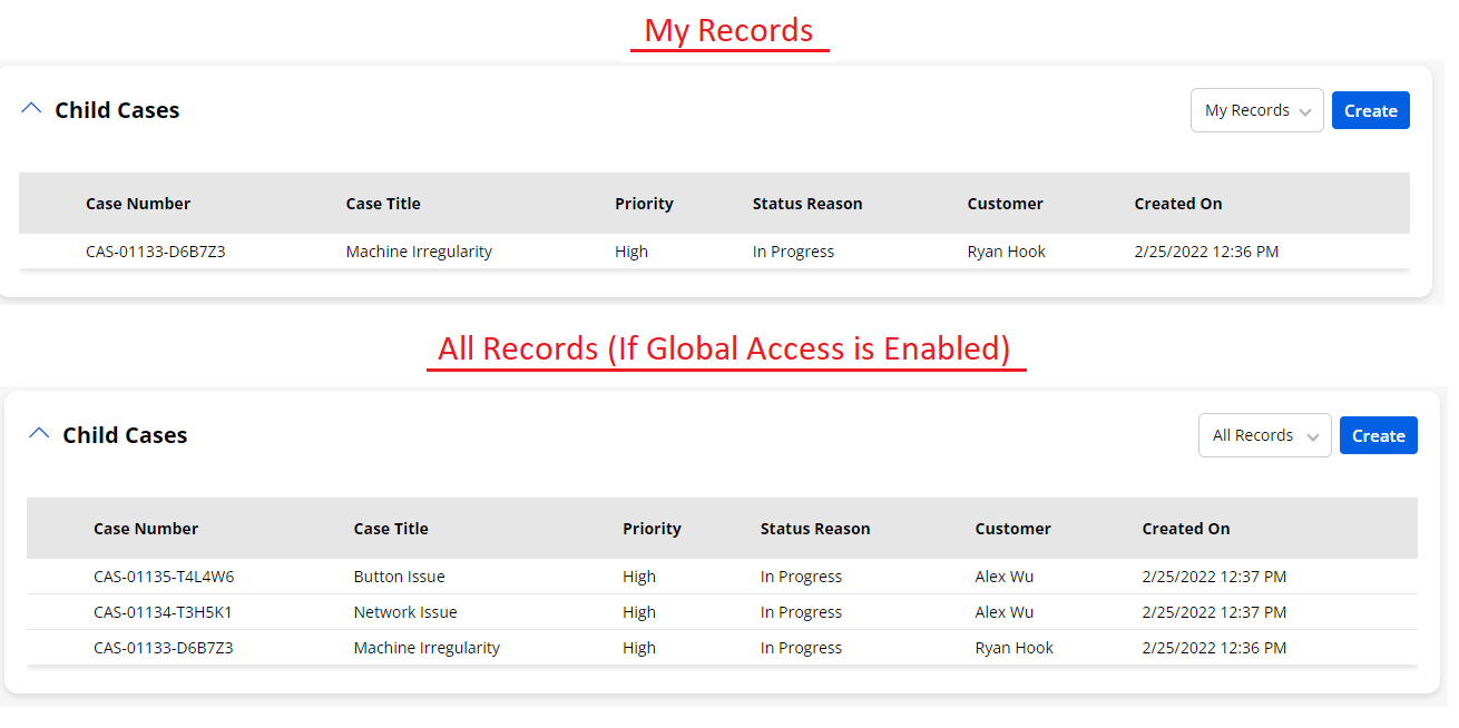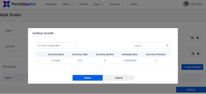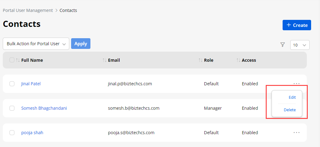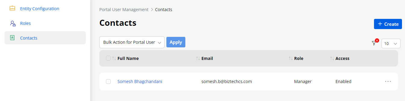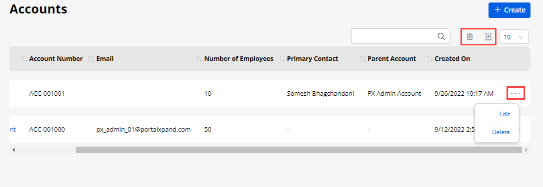 The portal users can perform such actions as Add (Create), Edit, and Delete as per the accessibility from the Form builder Sub Grid configuration. [2]