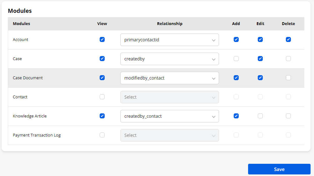 The portal users will get the module records and access rights (Edit, Detail, and Delete) as configured in the workflow for the specific module by setting up the condition(s).