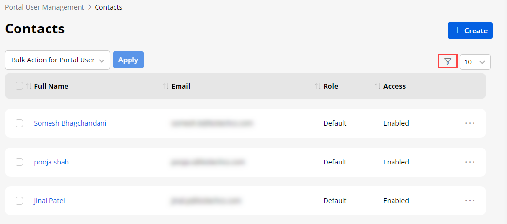 If you have set up the workflow to filter and sort the module records, the portal users will get the module records as per the condition that is set from the admin side.