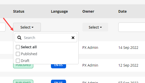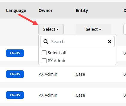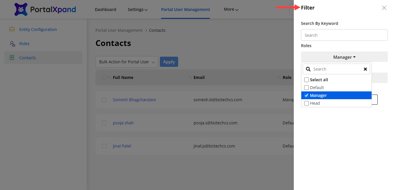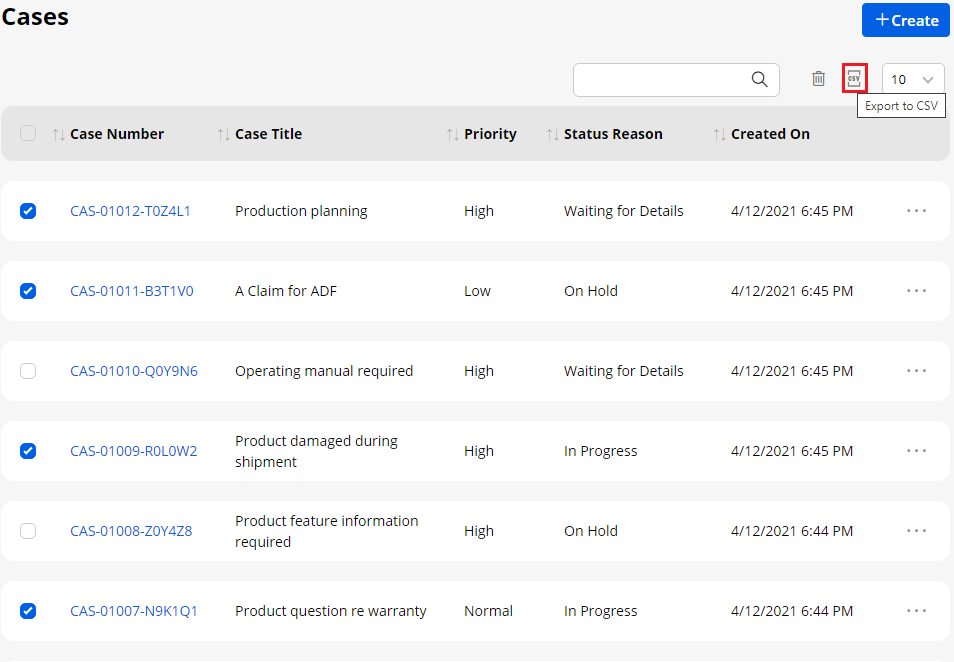 The portal users can export the Entity records in the CSV. Select all or select required records to export in CSV and click on the Export CSV, it will export the CSV file of the selected records.
