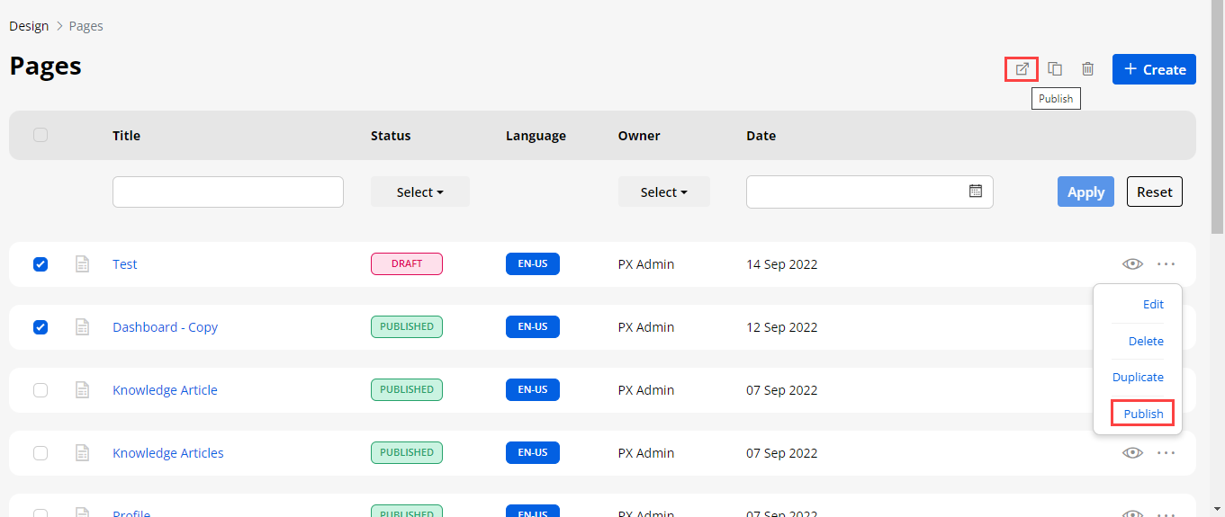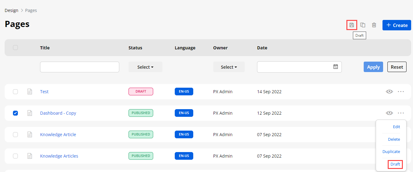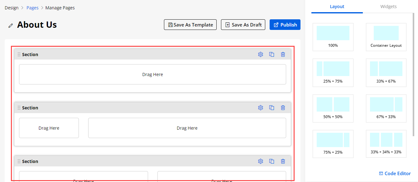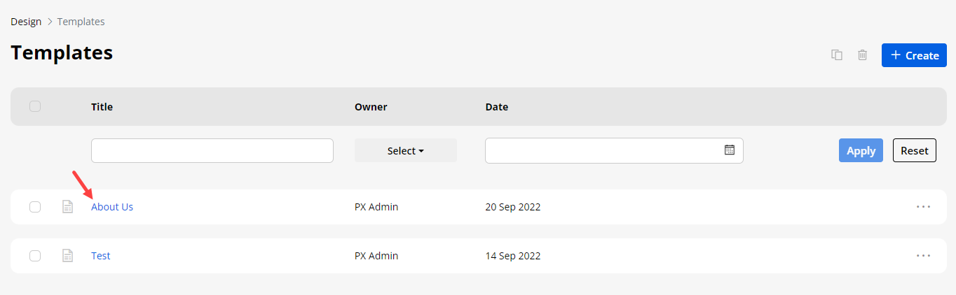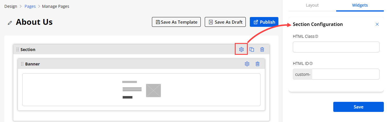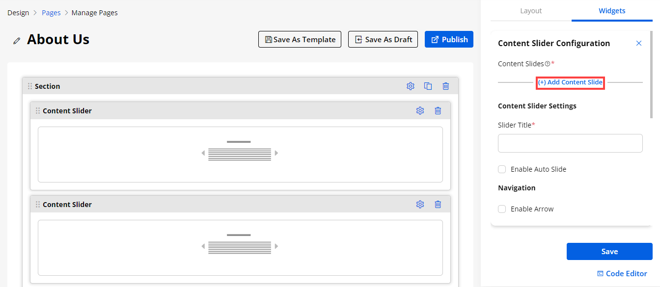 By clicking on the Edit, you will be redirected to the edit view of the particular page in the admin side.