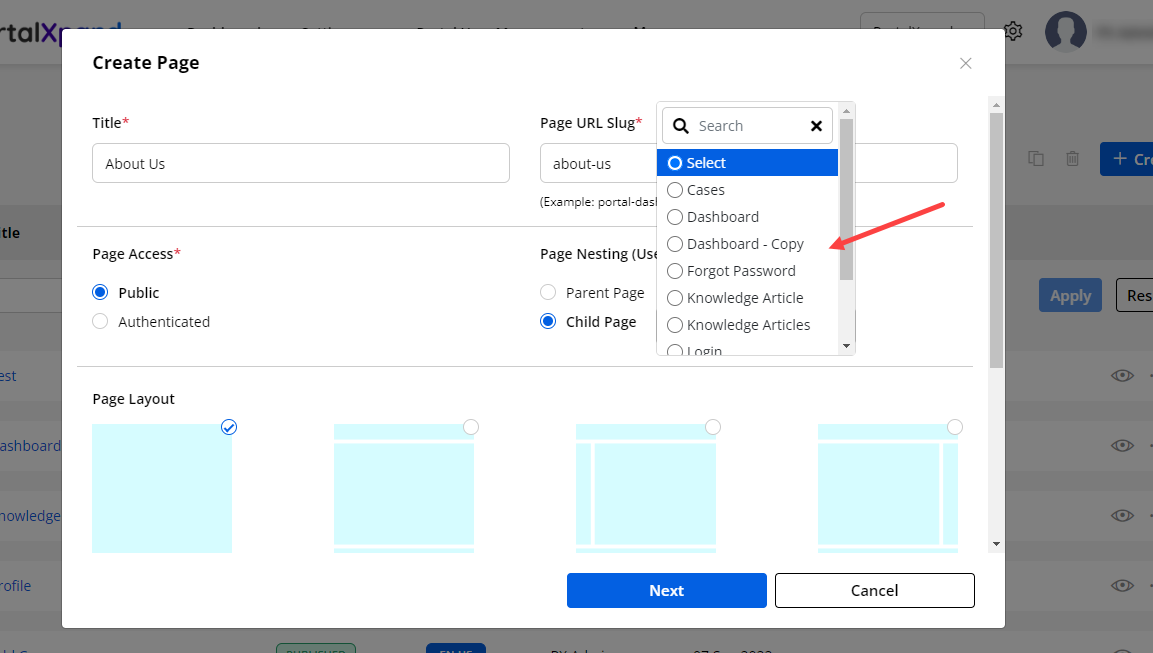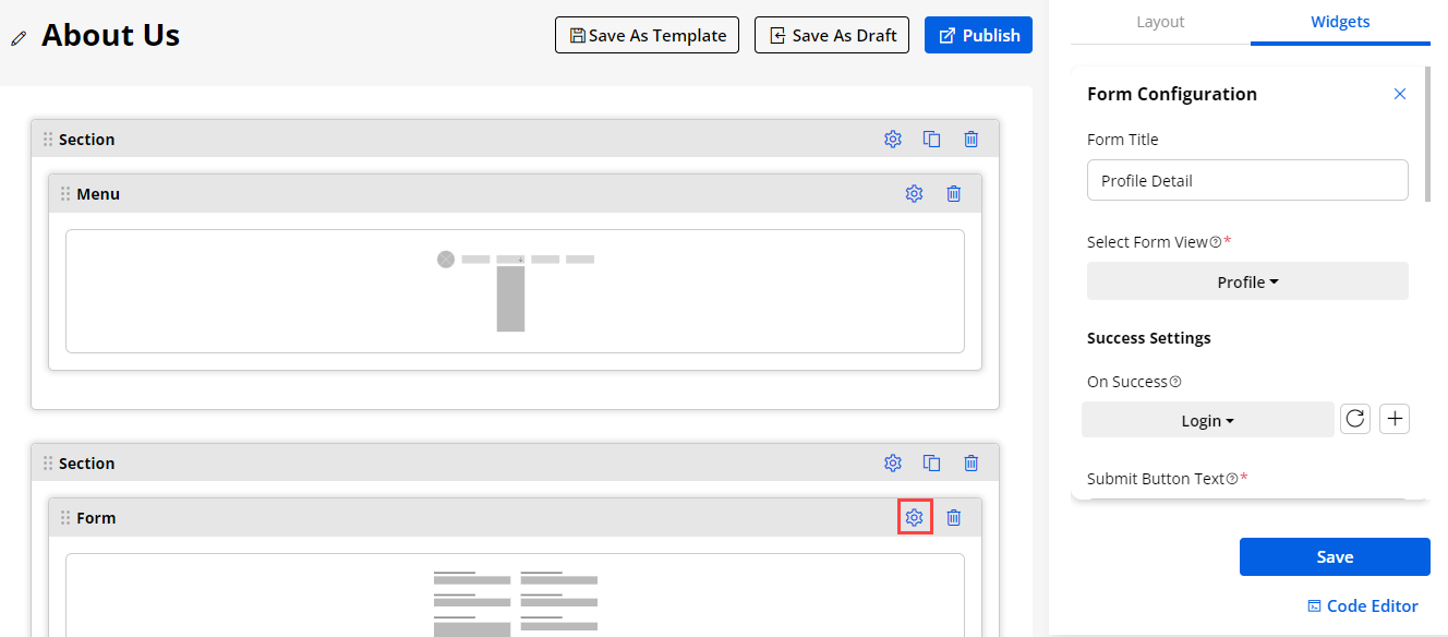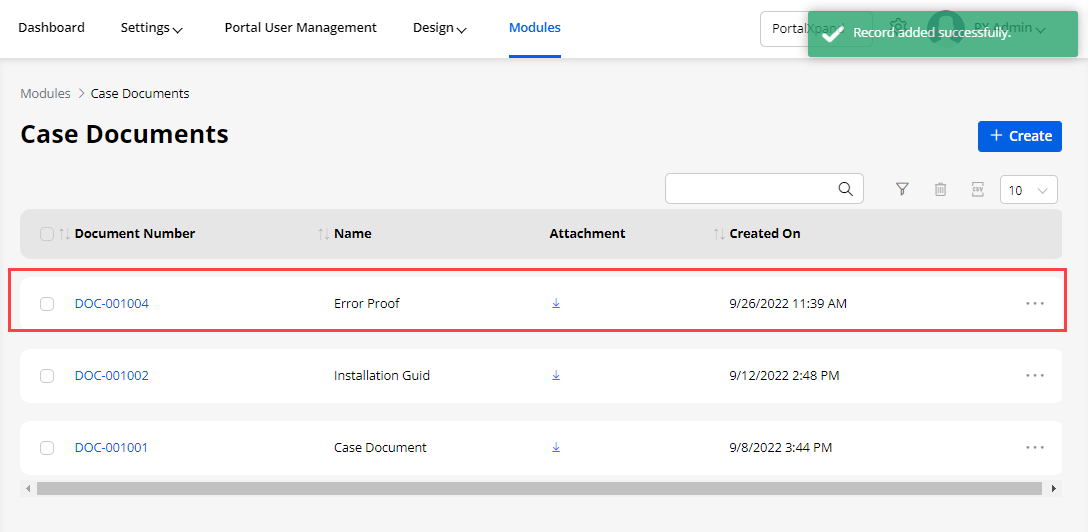 Similarly, from the module record’s detail page, the portal users are redirected to the page that has been set in the form widget for the Detail page. [2]
