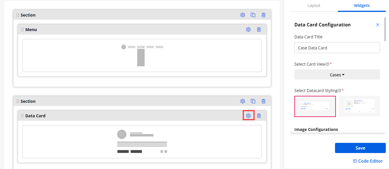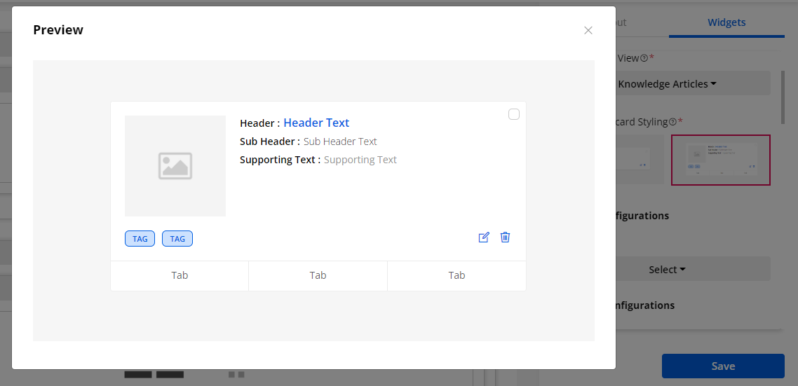 The details in the data card appear as per selected fields for the Header Text, Sub Header Text, Supporting Text, and Tags.