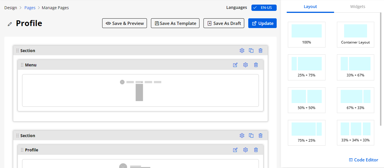 The portal users will get the profile details as per the configuration of the ‘Profile widget’ in the Page Builder of the profile from the admin side. You will get the Profile layout as per the selection of the Design Layout (Style) of the Profile.