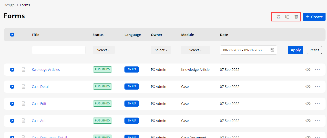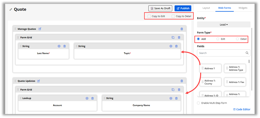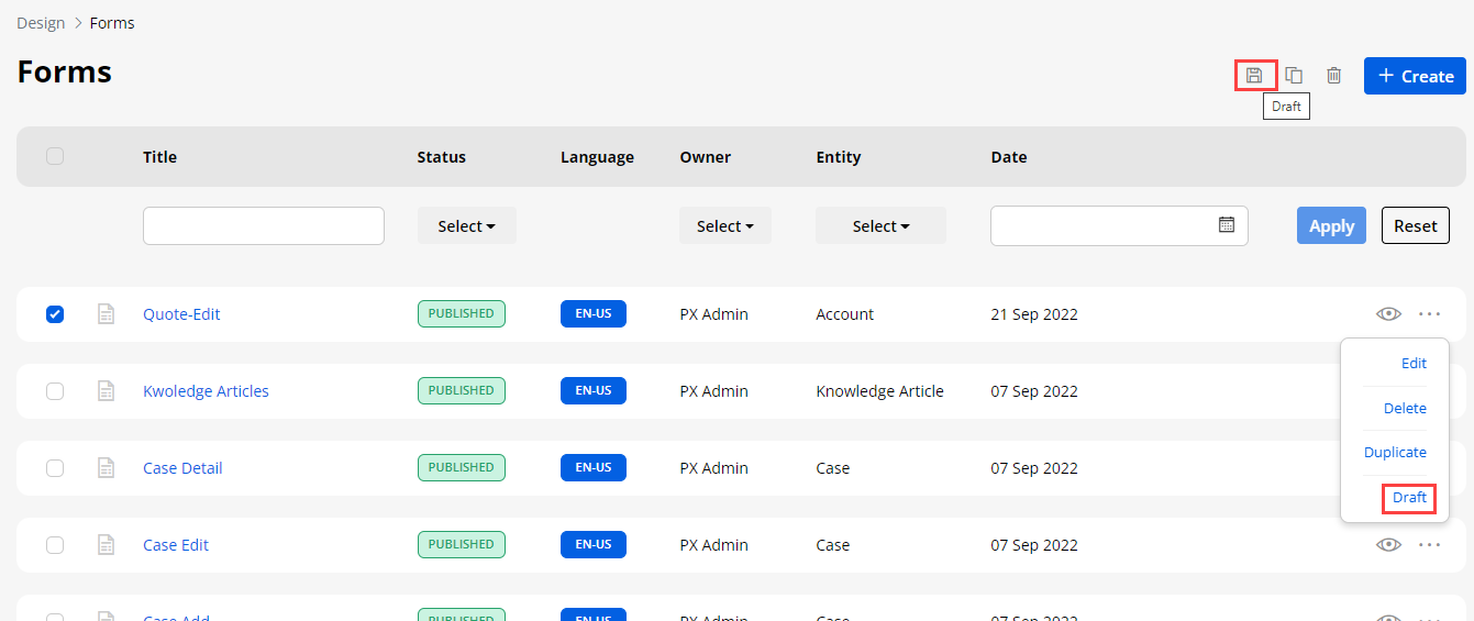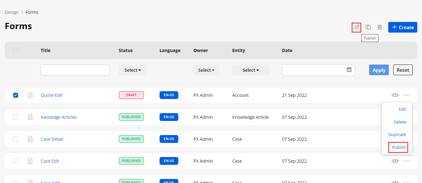 By clicking on the respective Edit icon, you will be redirected to form/list/menu edit view in new tab. [3]