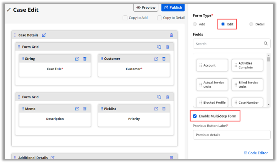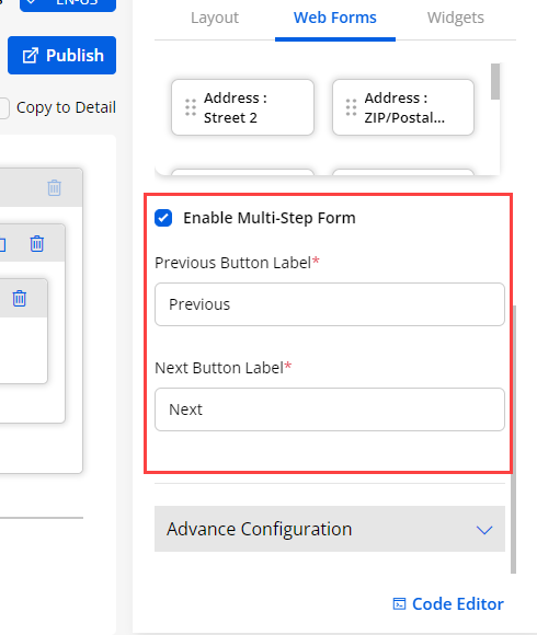 If you have enabled the multi-step Form for the Add/Edit form (records), the portal users will get stepwise form filling. The steps are the section-wise details that are added in the form layout.