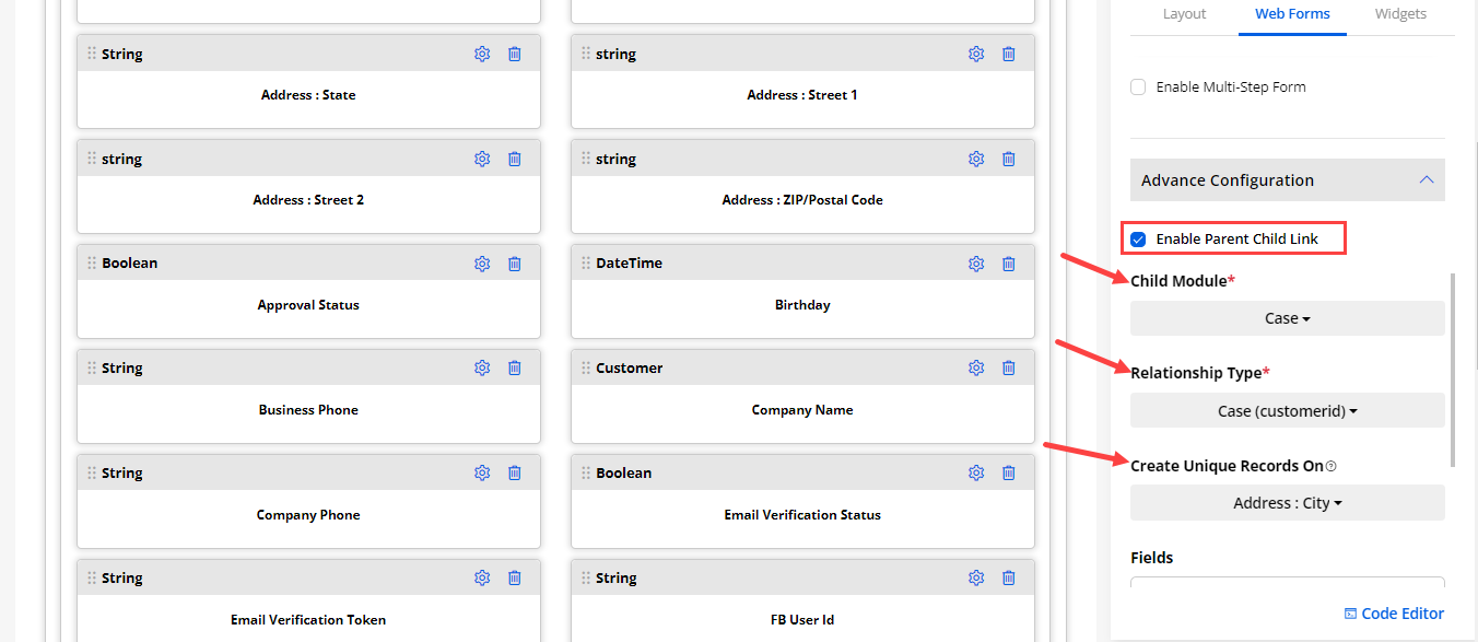 If the identification is set for the Parent-Child form and the user enters the field value that is already existing in the CRM, it will not create a new record for the Parent module. It will relate the child module record with an already existing parent record.