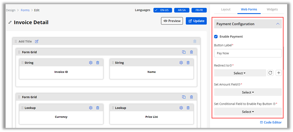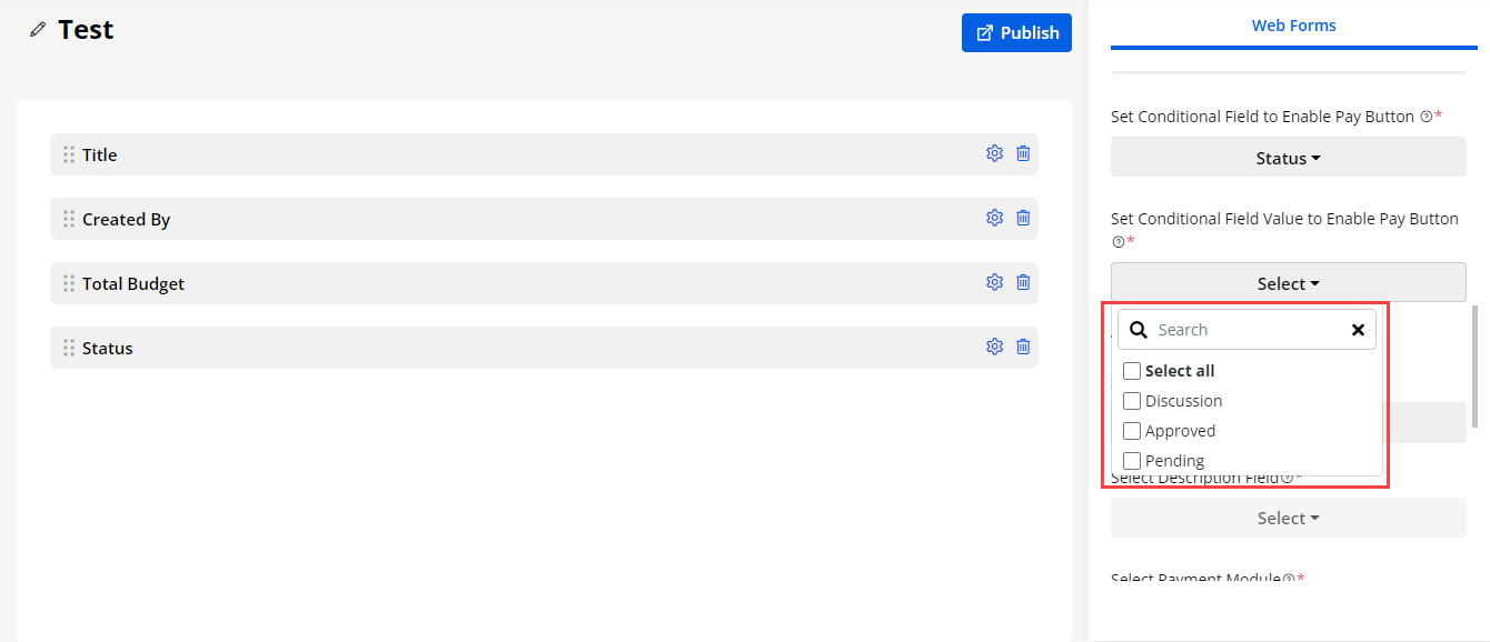 If you have configured the “Payment Integrations” from the admin side and configure the Payment Settings from the List Builder, only then the portal users will get the Pay Now button for payment. [1]