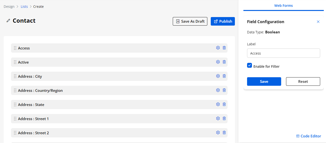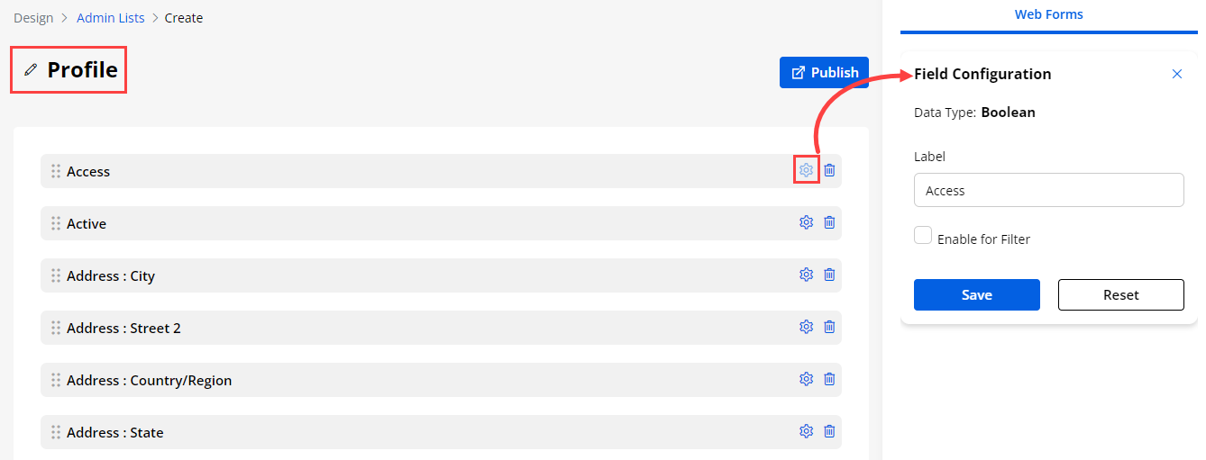 If you want to modify data level settings from any specific builder like List, DataCard, Form, Menu, Profile, and Register then you will get an editing shortcut. to redirect directly to the respective list, form, or menu details in the admin. [2]