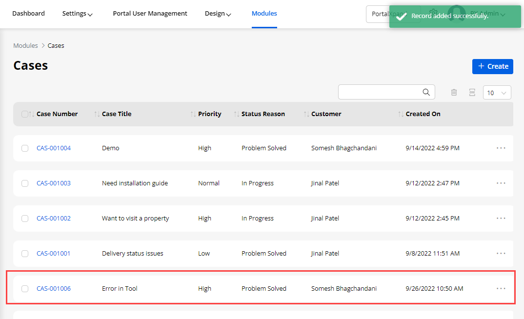 Here, as per the condition, the portal users will see only those module records whose “Status Reason” is New. [2]