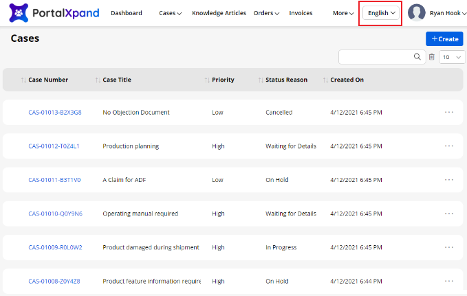 - The portal users will get the RTL (Right to Left) content support. If the portal users select the RTL Language from the ‘Language’ option, the Portal content will convert into RTL- Right To Left.