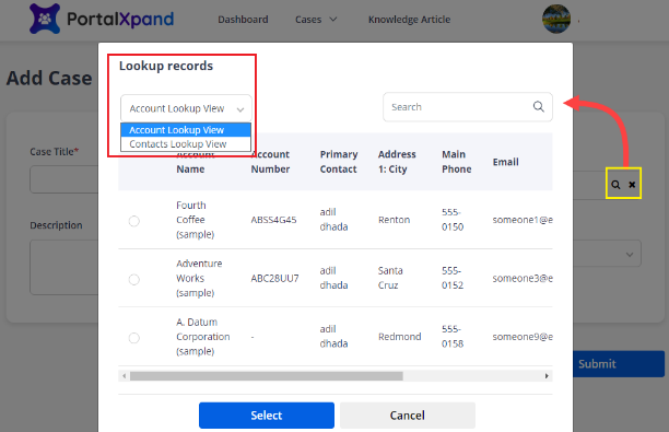 Note : You have to enable the target module from the module configuration for the customer portal.If not enabled, Lookup will not open and show an error message “No view found”.
