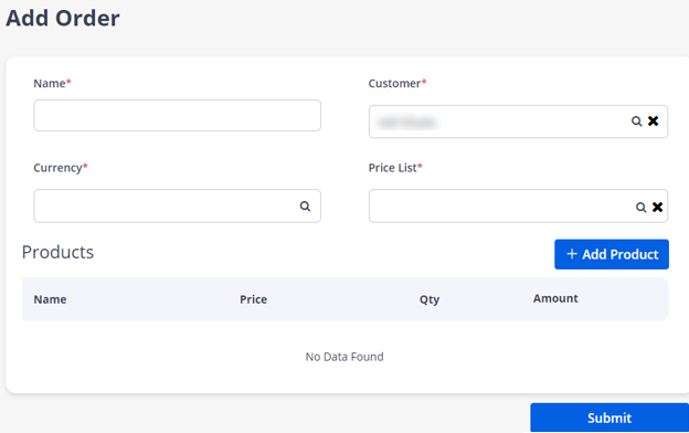 The portal users can add new records if the adding rights are given. As per configured form the Page Builder, the fields will appear to insert the details.