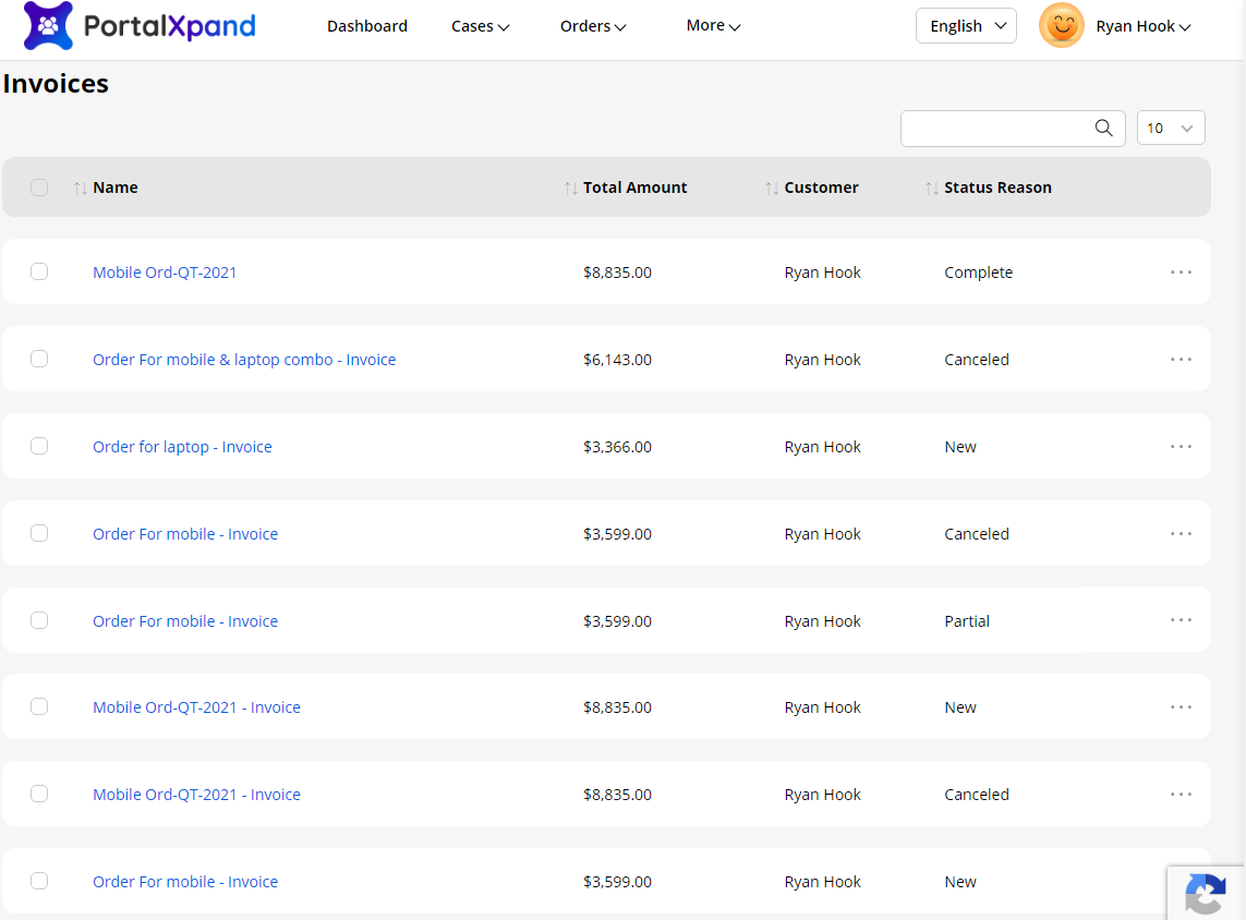 Now, as per the condition in the workflow for the Invoices module, the portal users will see only those module records that are set in the condition.