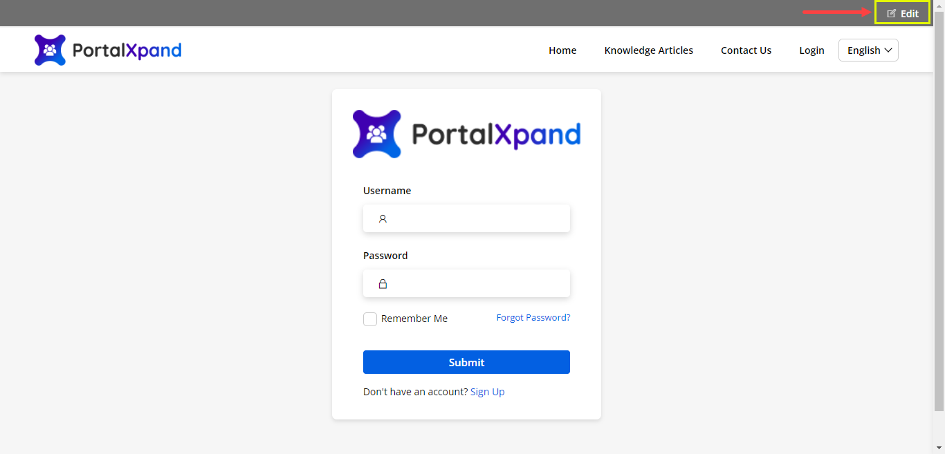 While on the portal side, if you are logged in to the CRMJetty Portal admin account then you will get the Edit functionality on every page. [1]