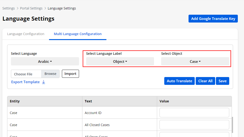- Secondly you have to Select the Language Label from the Portal or Module.