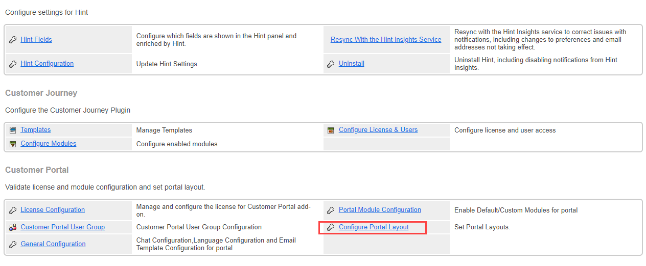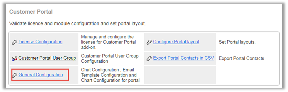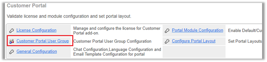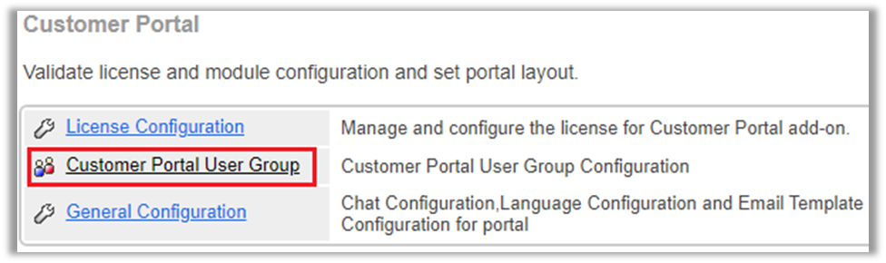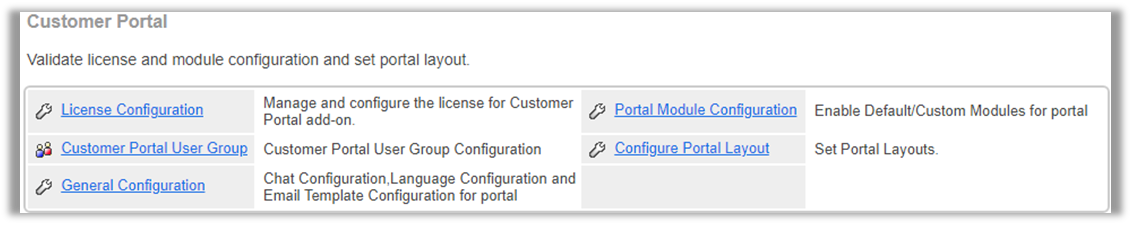Navigate to “Admin -> Customer Portal”. Click on “Portal Module Configuration”.