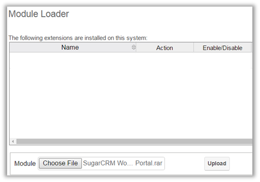 To start with the installation, Log-in as Administrator into SugarCRM. Navigate to the Administration page and click on ‘Module Loader’ to install the package.
