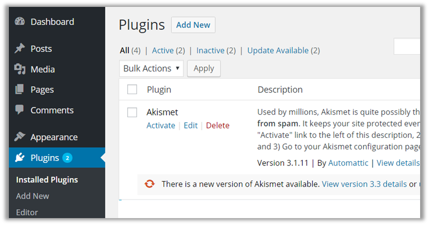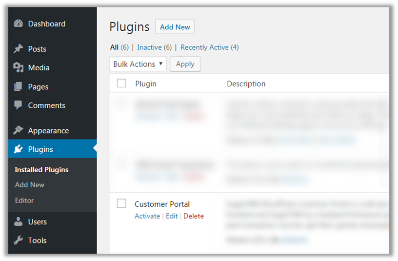 Go to Installed Plugins screen. Here, you can see SugarCRM Customer Portal plugin was successfully installed. But still it’s Inactive.