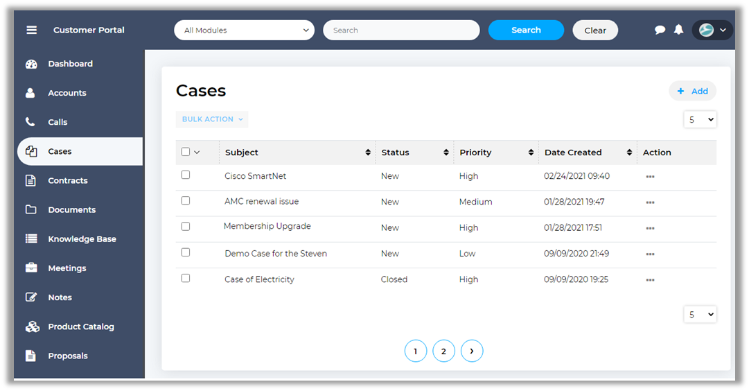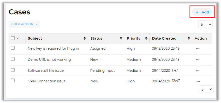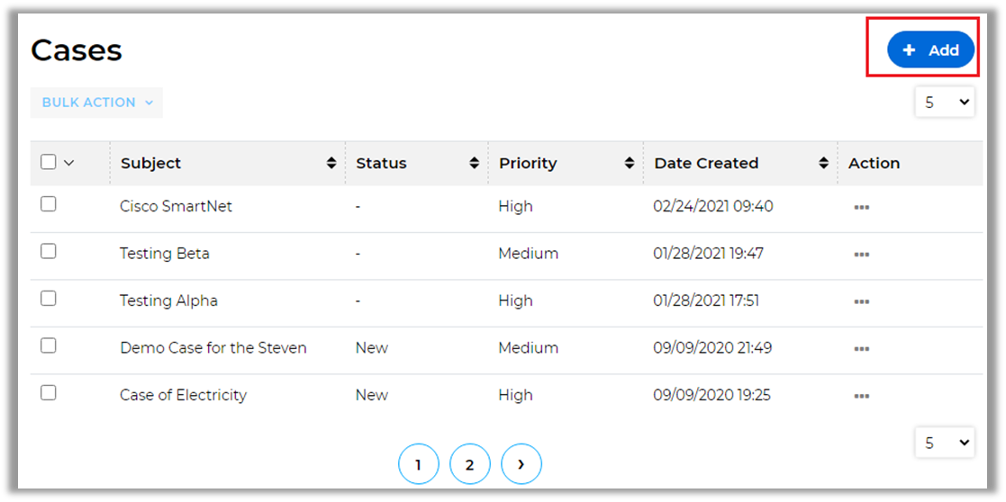Your customers will be able to see the list of cases by clicking on Case They can click on + Add Case button to add a new case.