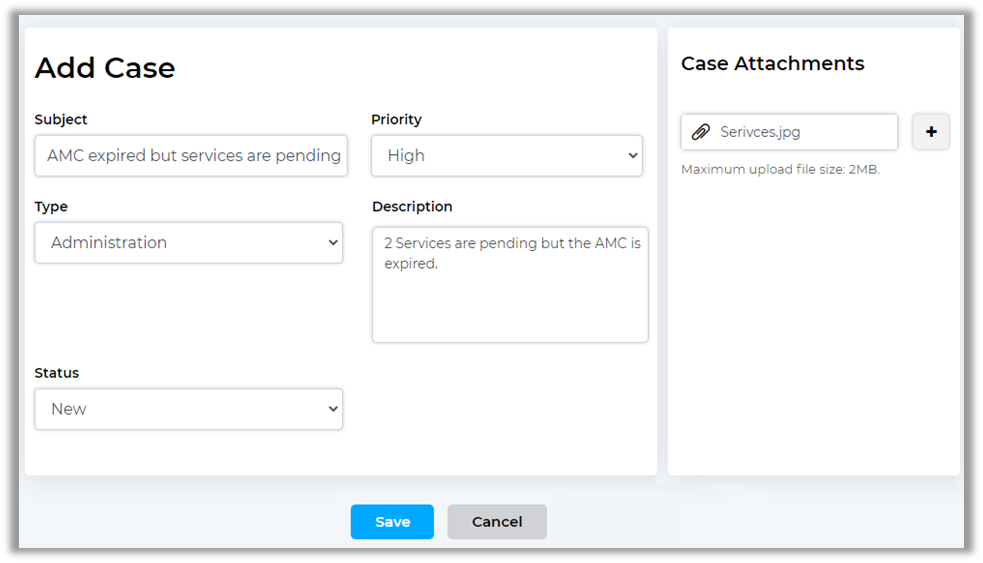 Now, the portal users can select the Status as per requirement. After adding the details, the portal users can save the case details.