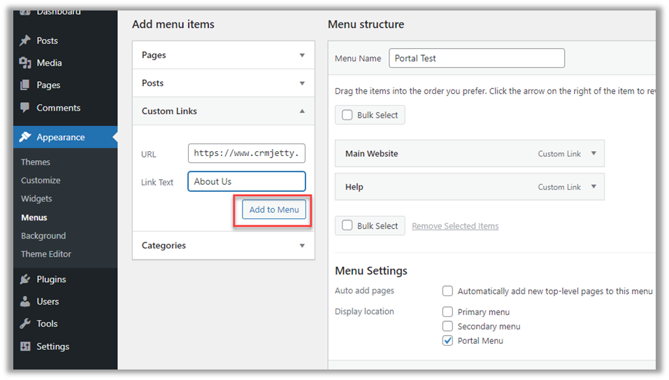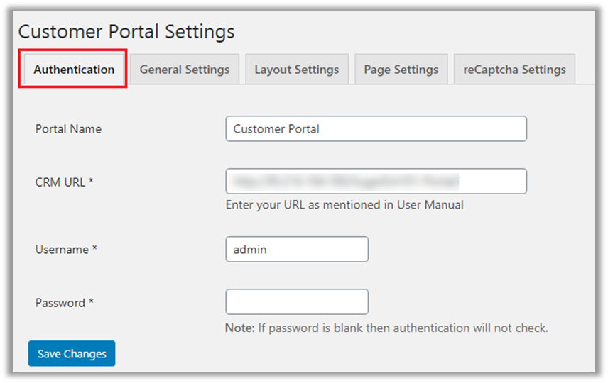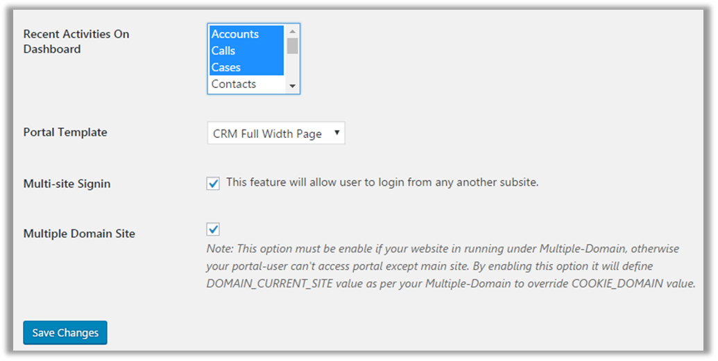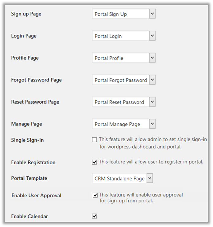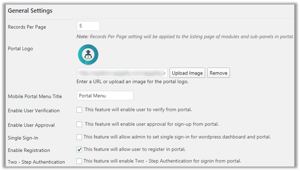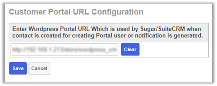 Note: WordPress portal URL configuration is mandatory for Portal user creation or for receiving notification from SugarCRM.