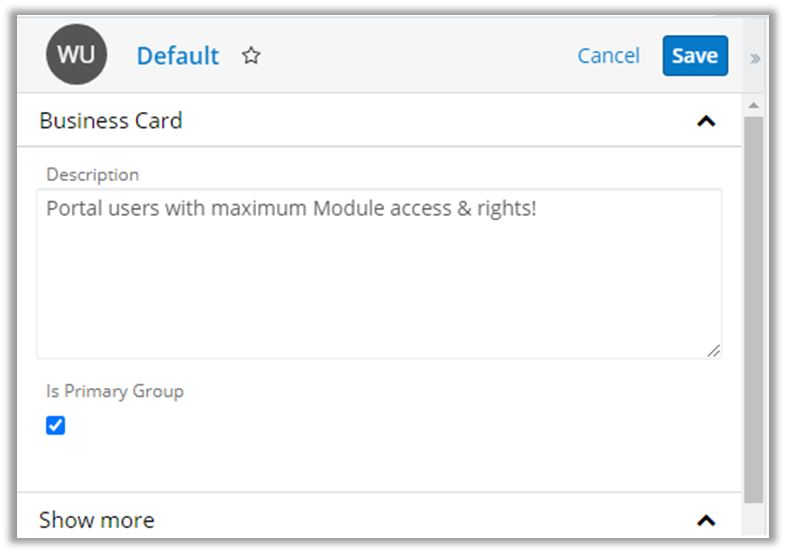 Once the Primary details (Business card details) are added, you can configure the Portal Access Module rights for the Portal users.