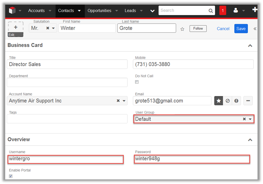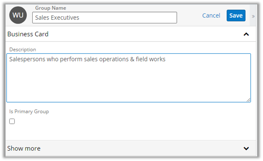 Note: By default, ‘Default’ group will be assigned to a newly created contact record.