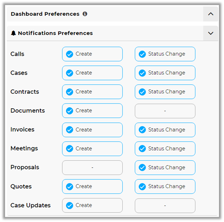 By scrolling down in Dashboard Preferences, your customers can set the preferences for the Notification.
