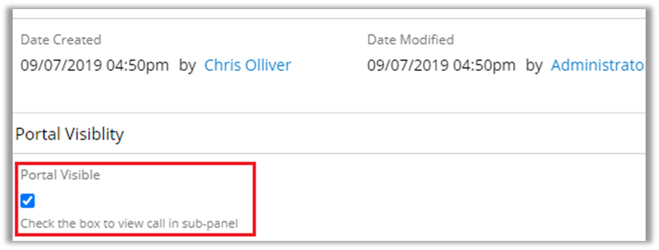 Note: For Calls and Meetings module, if you want to get data listed in sub-panel then you need to make then “Portal Visible”. Follow below steps to make call or meeting portal visible.
