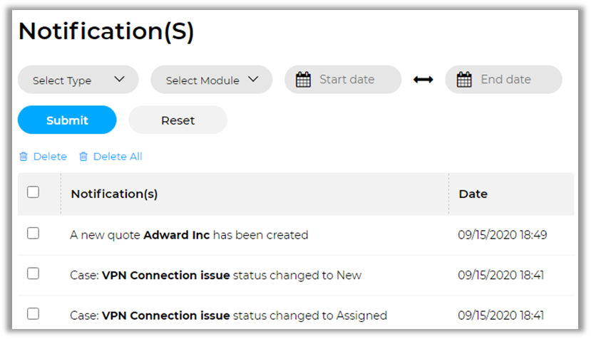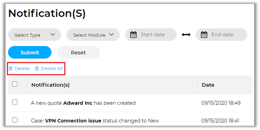 You can also delete the unwanted notification from the list. Select notifications and click on “Delete” button or click on “Delete All” button if you want to clear the notification list.