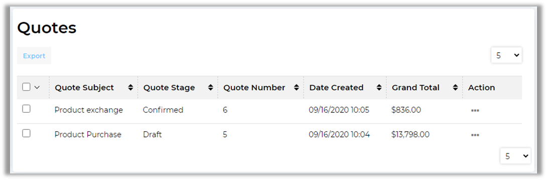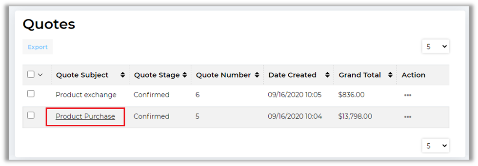 By clicking on Quotes, the user can verify the details of Quote. A button to accept or decline the quote will appear in the detail view of a quote when it reaches the “confirmed” stage. [1]