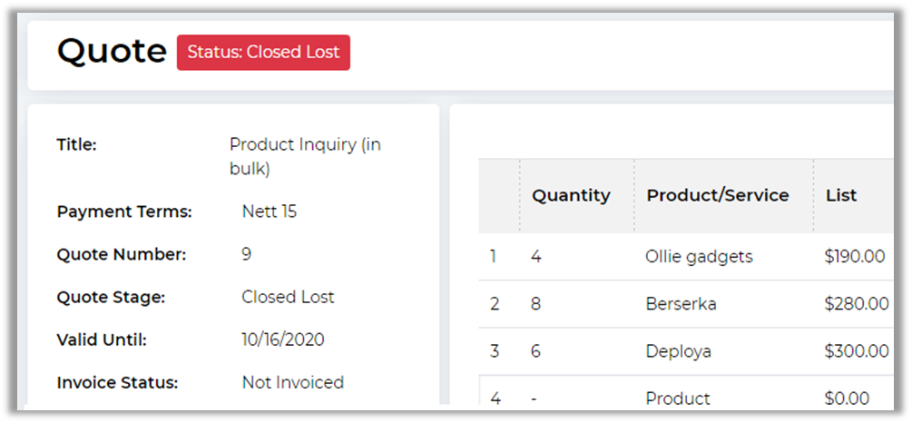 Similarly, you can also see the Status in your ‘SugarCRM portal’ as Closed Lost. [5]